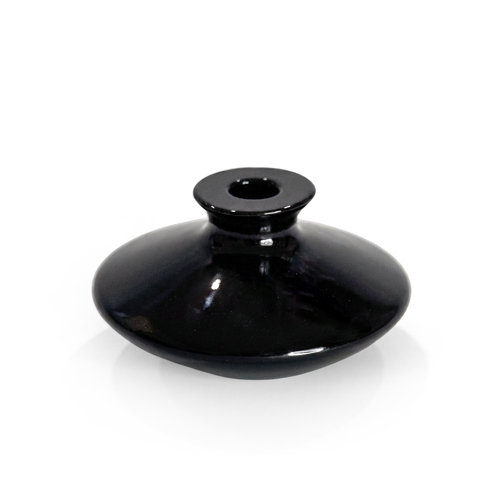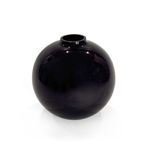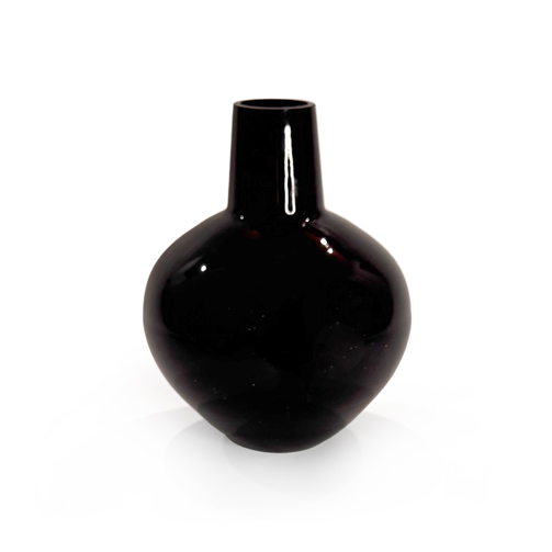American production, these vessels reflect a mid-century sensibility where form is reduced to essential volumes and the material carries the expression. The glass appears mold-blown with a refined finish, achieving smooth, continuous surfaces and balanced proportions. The dark tone absorbs light while softly reflecting it, creating depth rather than shine.
