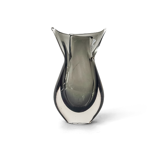 Produced in Murano, Italy, around the 1970s, these vases were crafted using the sommerso technique, which allows for the layering of different tones of glass without blending. This method highlights the depth of the smoke grey color and reinforces their sculptural quality. The pieces align with the modern tradition of Venetian glass, where workshops such as Seguso Vetri d’Arte or Formia developed organic forms evoking fluidity and movement.